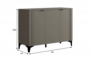 Дверцы комода выполнены из МДФ с фрезеровкой и скрывают за собой просторное хранилище для различных вещей.